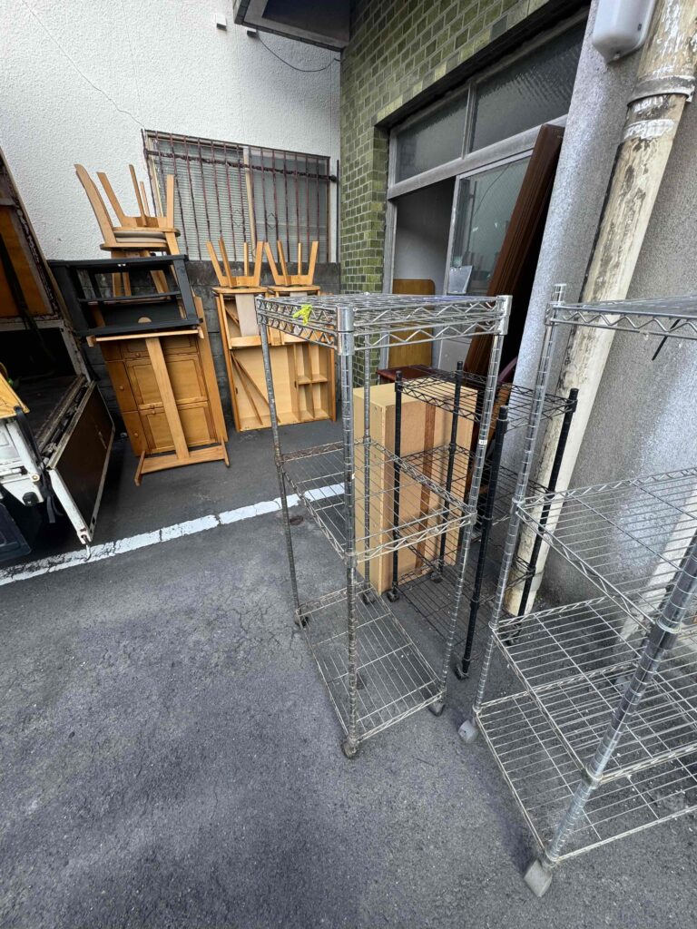 - スチールラックや大型家具も一括回収場所を取るメタルラックや、背の高いクローゼットなども、そのままの状態から運び出します。お部屋がみるみるうちにスッキリしていく様子は、見ていて気持ちが良いものです。