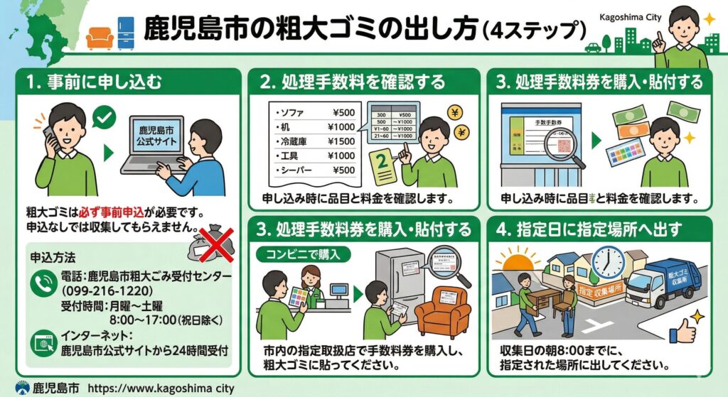 鹿児島市の粗大ゴミの出し方(4ステップ)
