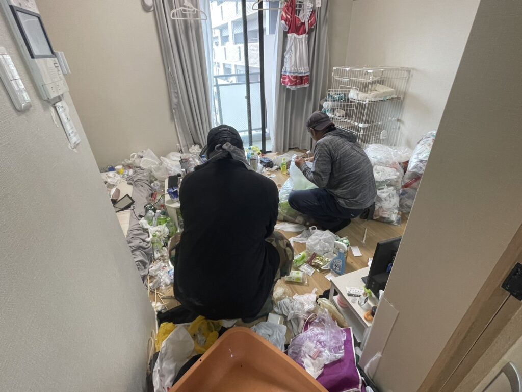 生活ゴミや衣類、ペットボトルなどが蓄積し、生活導線が塞がれてしまっている状態でした。このような状況でも、経験豊富なスタッフが迅速に分別・搬出を行います。