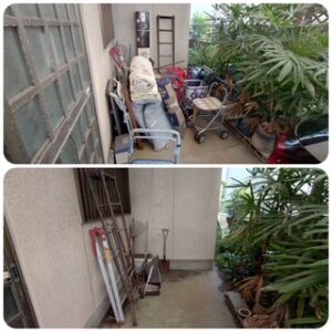 1日目でしっかりと「仕分け」と「道」ができました。明日は一気に搬出を行い、スッキリとした空間をお見せいたします。 現場責任者としても、お客様が明日、ガランとしたお部屋を見てホッとされる表情を見るのが今から楽しみです。